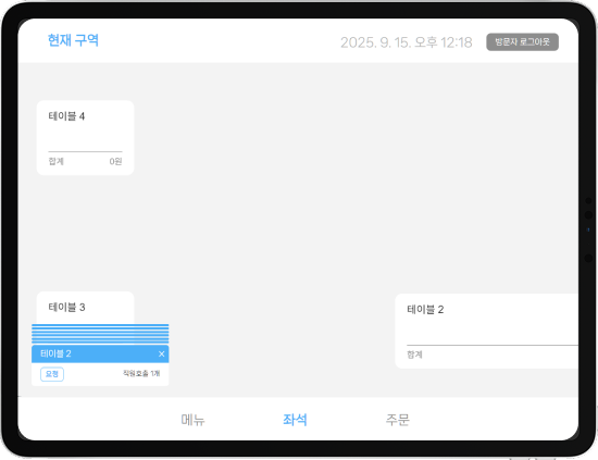 매장 테이블 위치에 따라 좌석을 관리할 수 있어요.